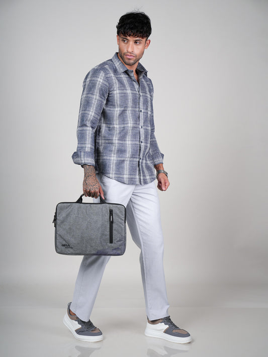 Men’s Grey Casual Checked Shirt