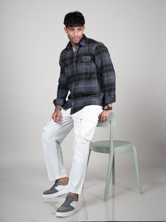 Men’s Grey Casual Checked Shirt