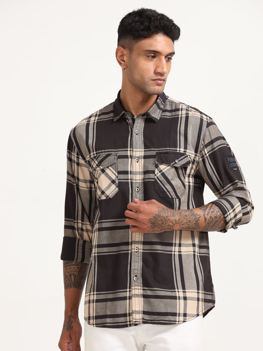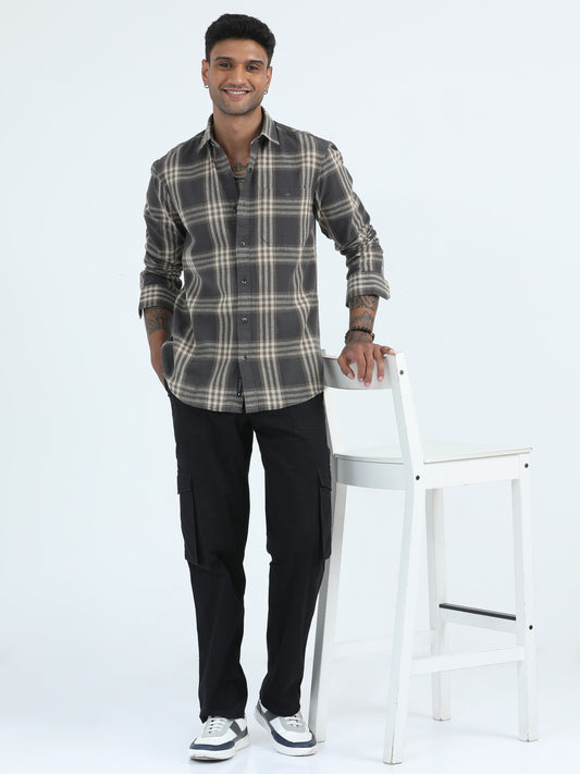 - Layering: For added warmth and style, layer your Check shirt for men over a plain t-shirt and complete the outfit with boots.