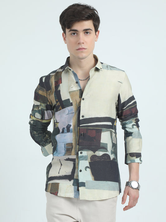 Green Poplin Cotton Poly Printed Shirt