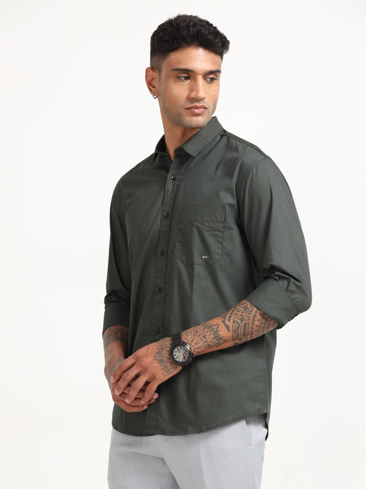 -58% OFFOlive Poly Poplin Lycra Solid Shirt