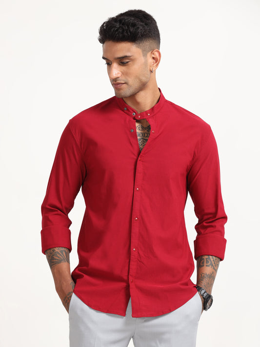 -50% OFFRed Dobby Super Lycra Solid Shirts