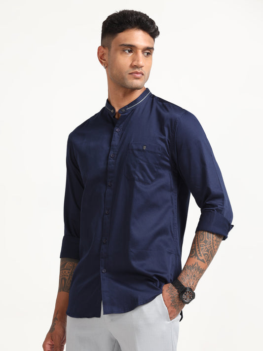 -58% OFFNavy Poly Poplin Lycra Solid Shirt