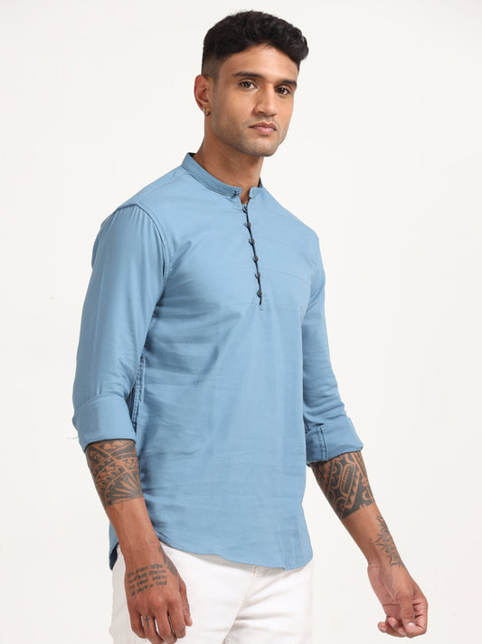 -50% OFFBlue Dobby Lycra Solid Shirt