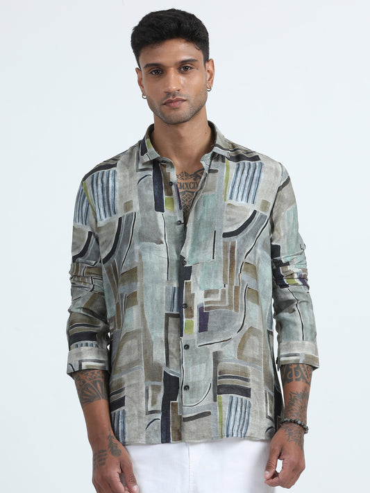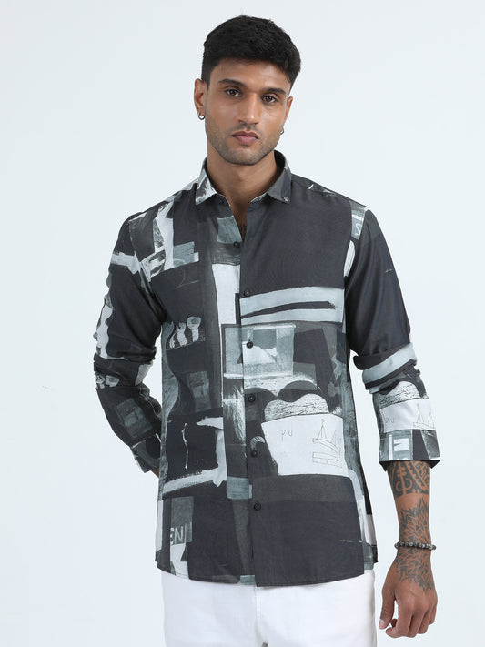 -50% OFFNylon Digital Printed Shirt- D Grey