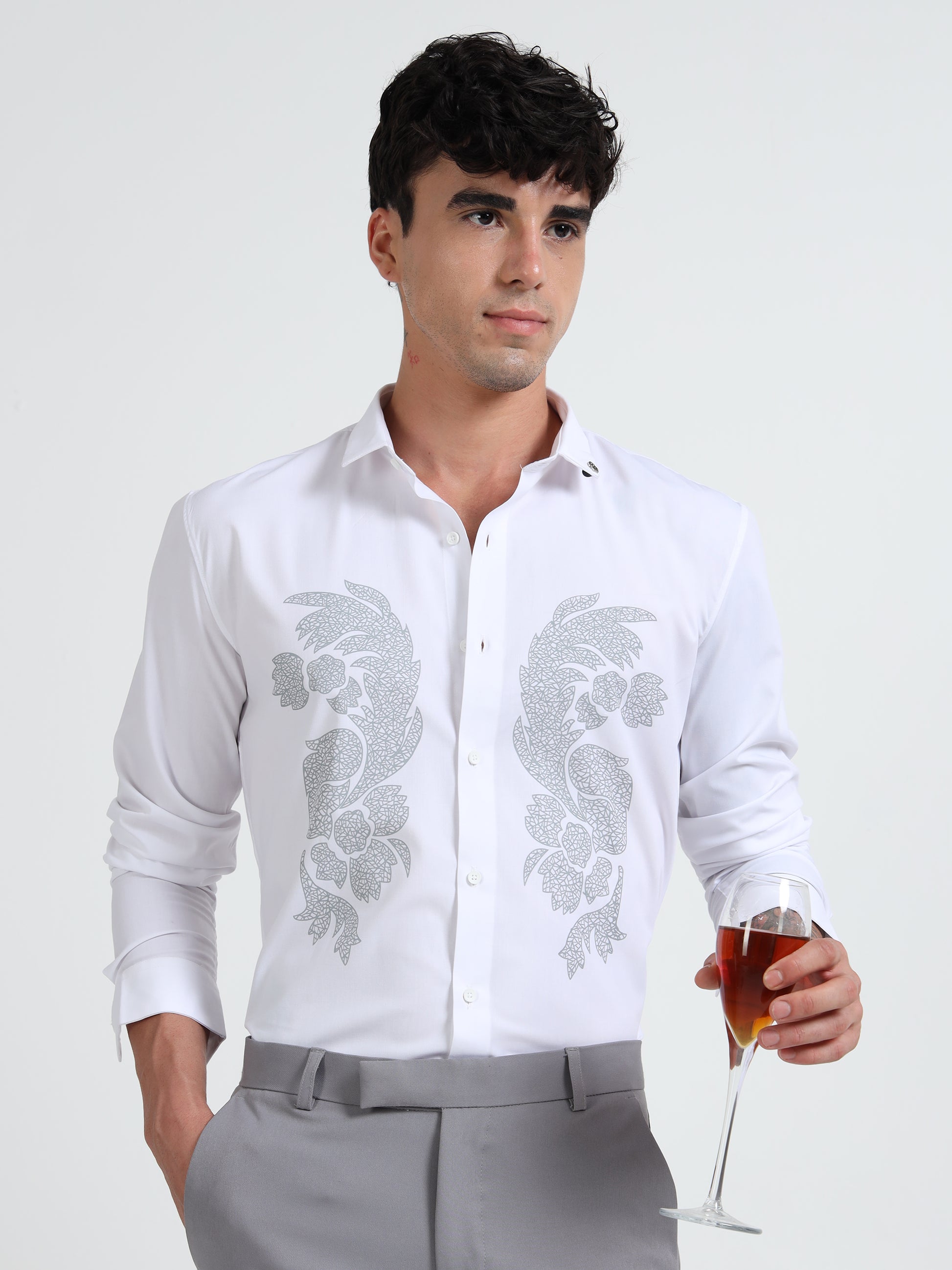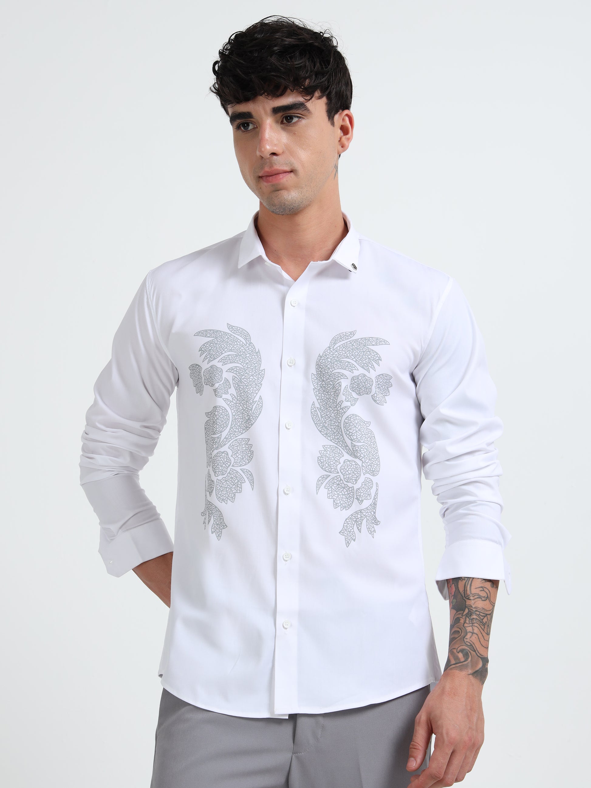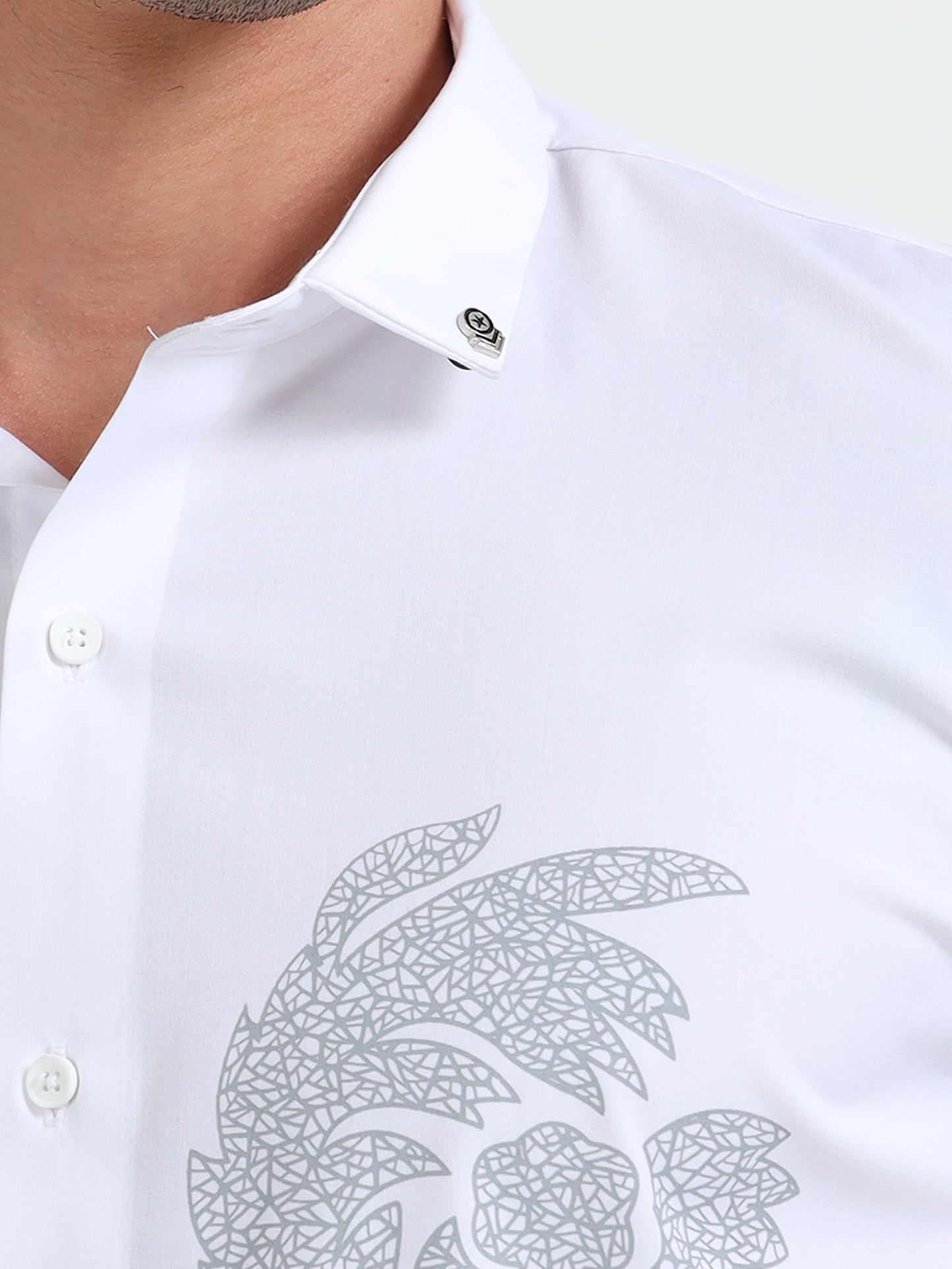 White Men Classic Printed Casual Shirt