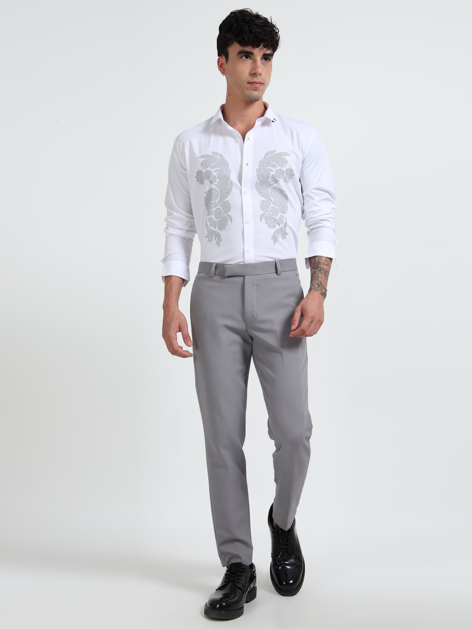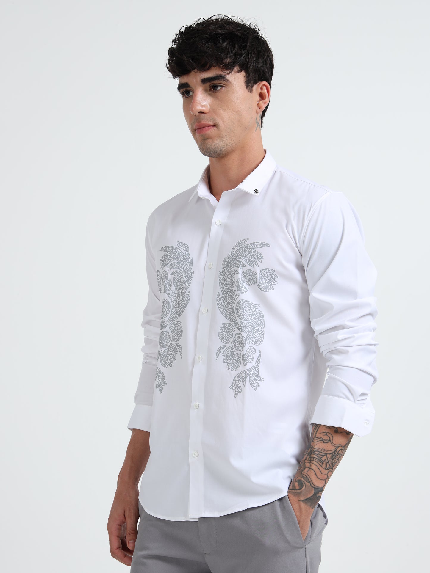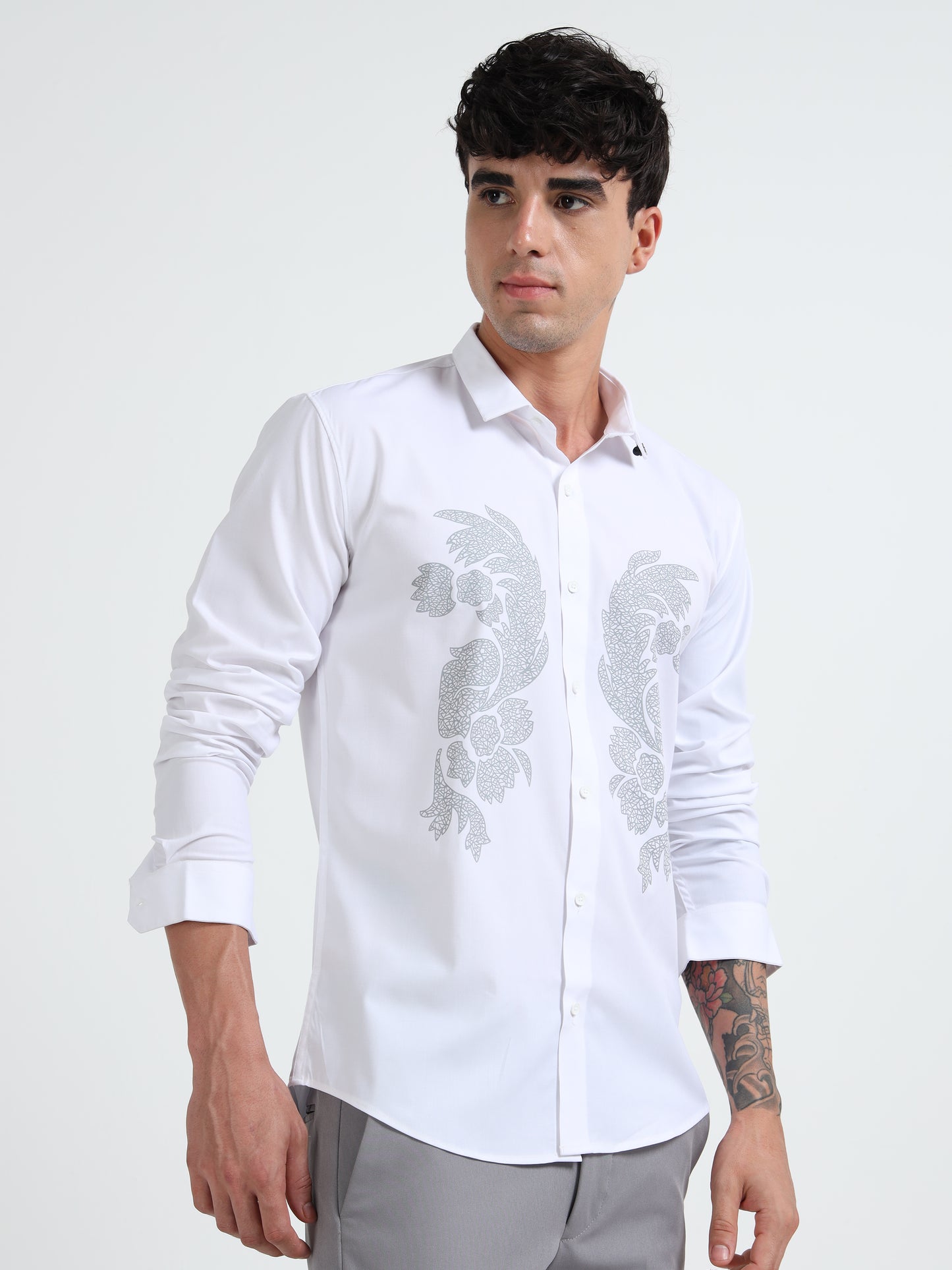 White Men Classic Printed Casual Shirt