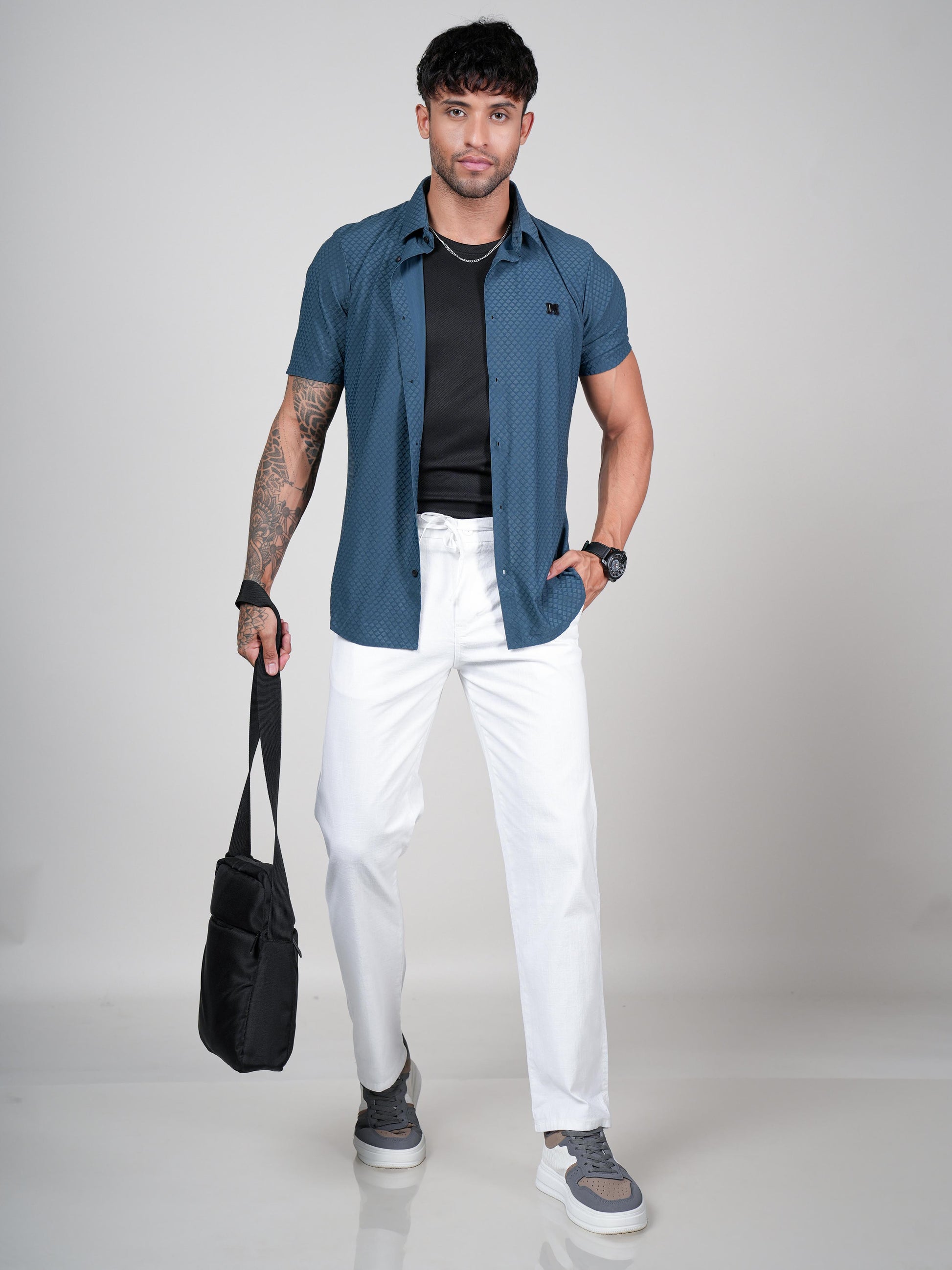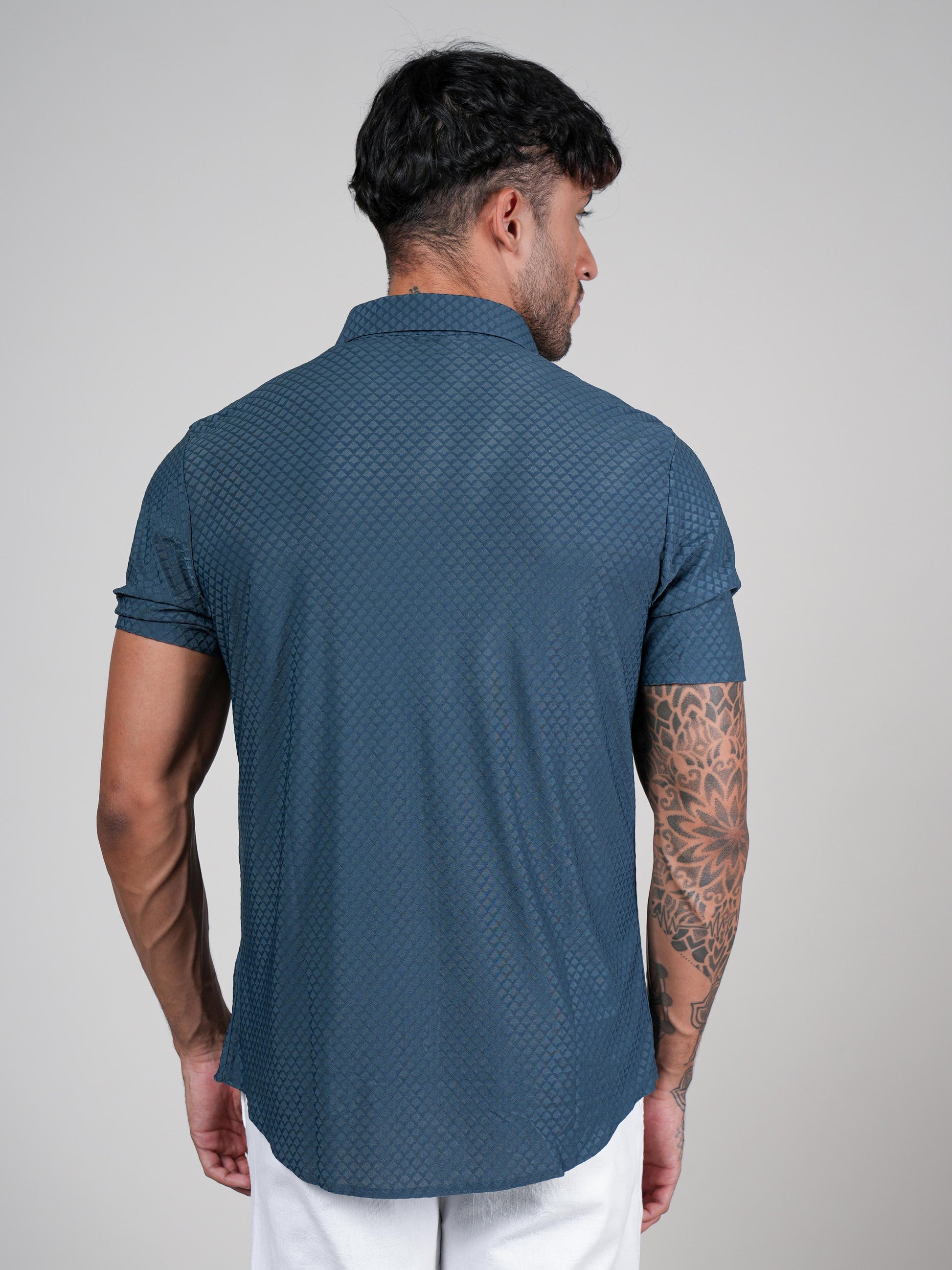 Men’s Bottle Green Textured Short Sleeve Shirt