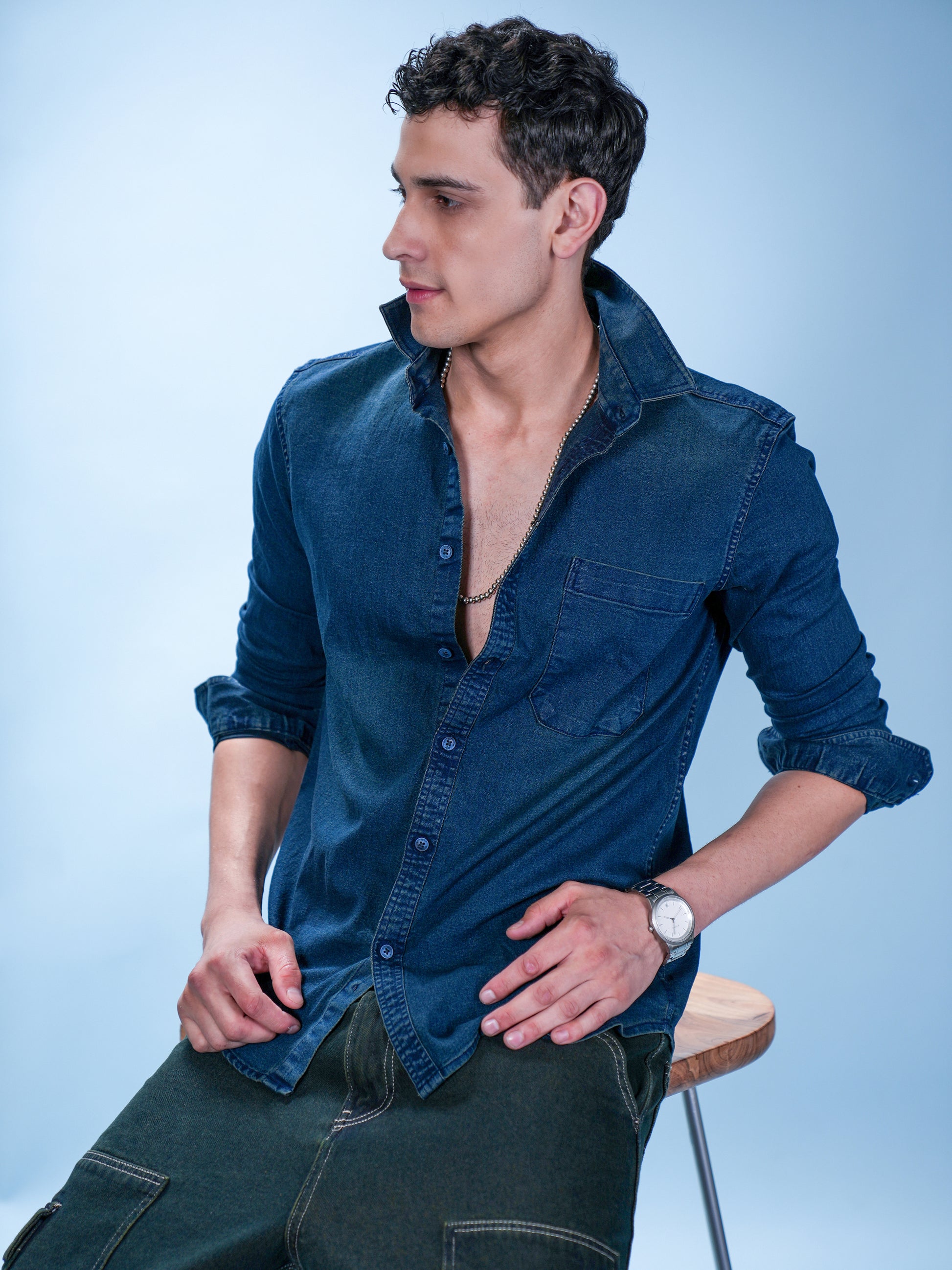 Men’s Green Denim Shirt