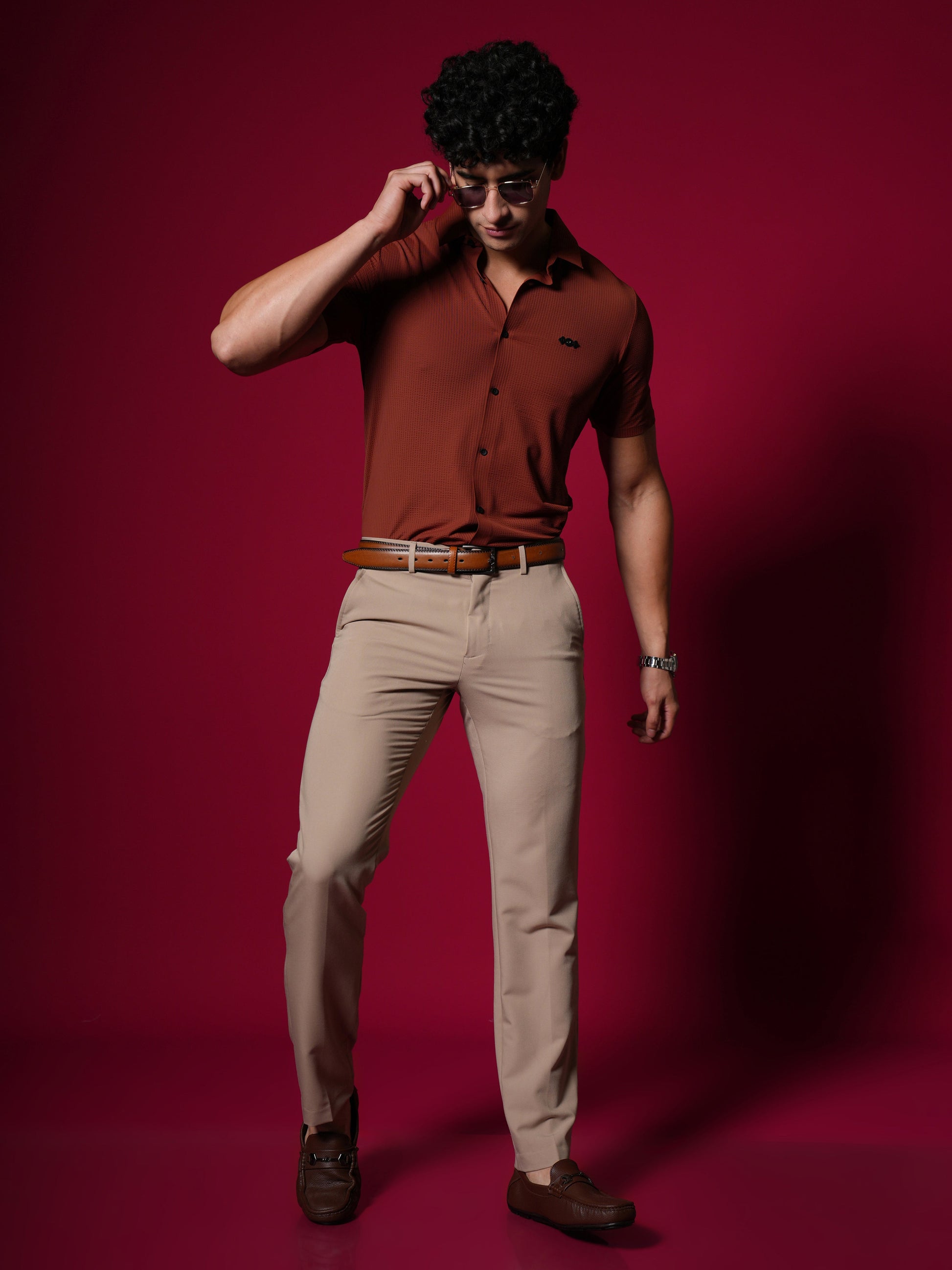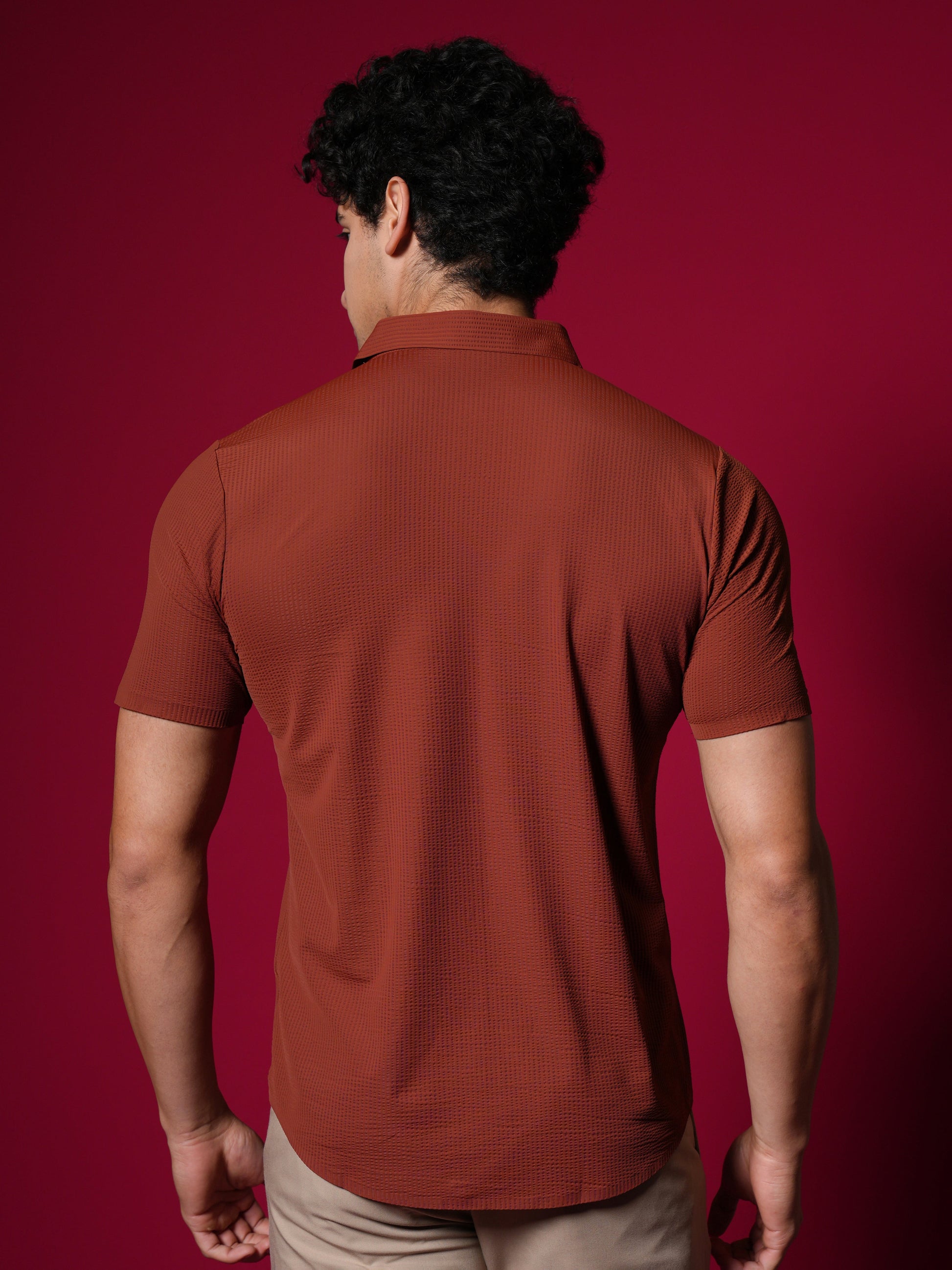 Men's Short Sleeve Stitchless Shirt Orange