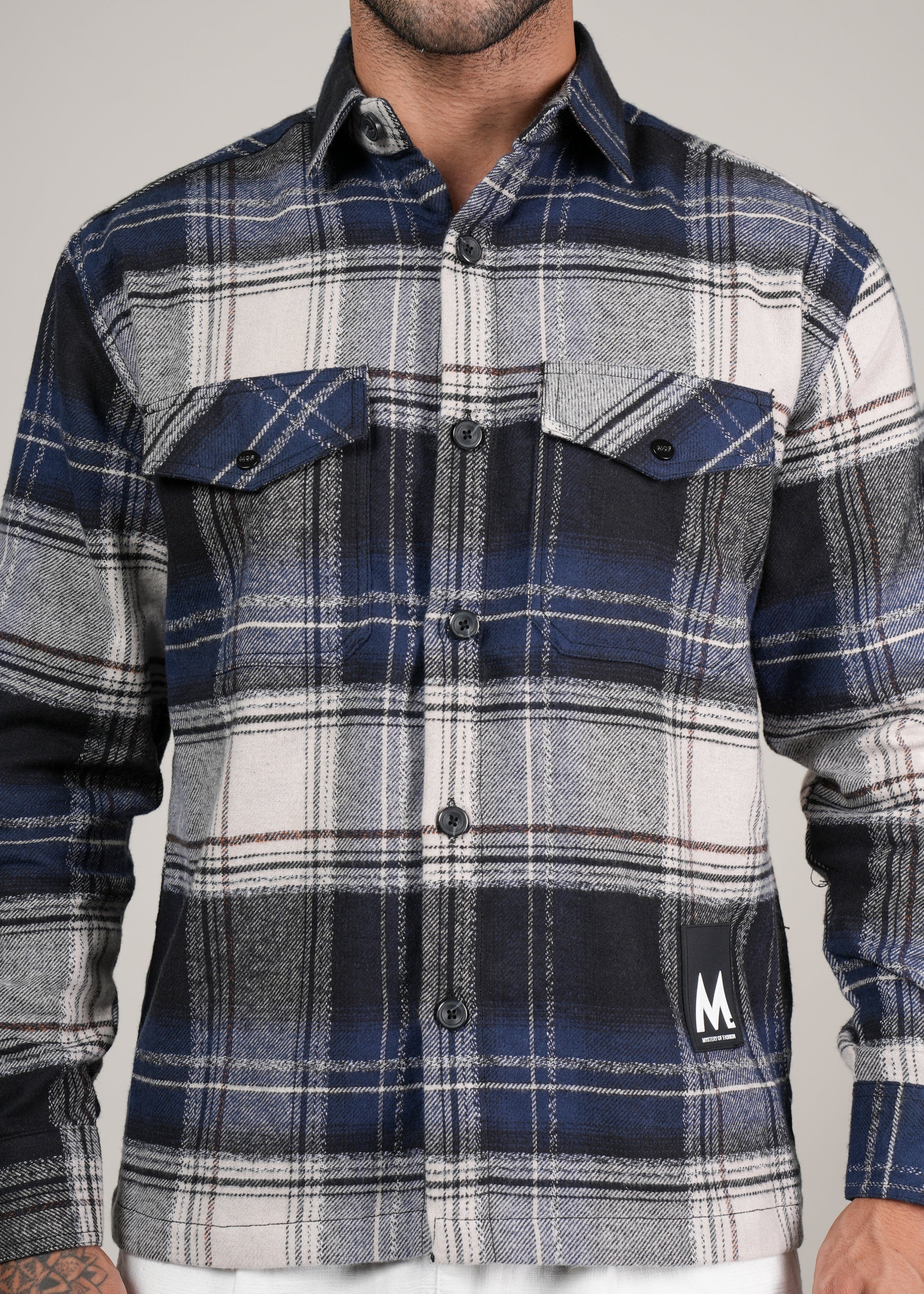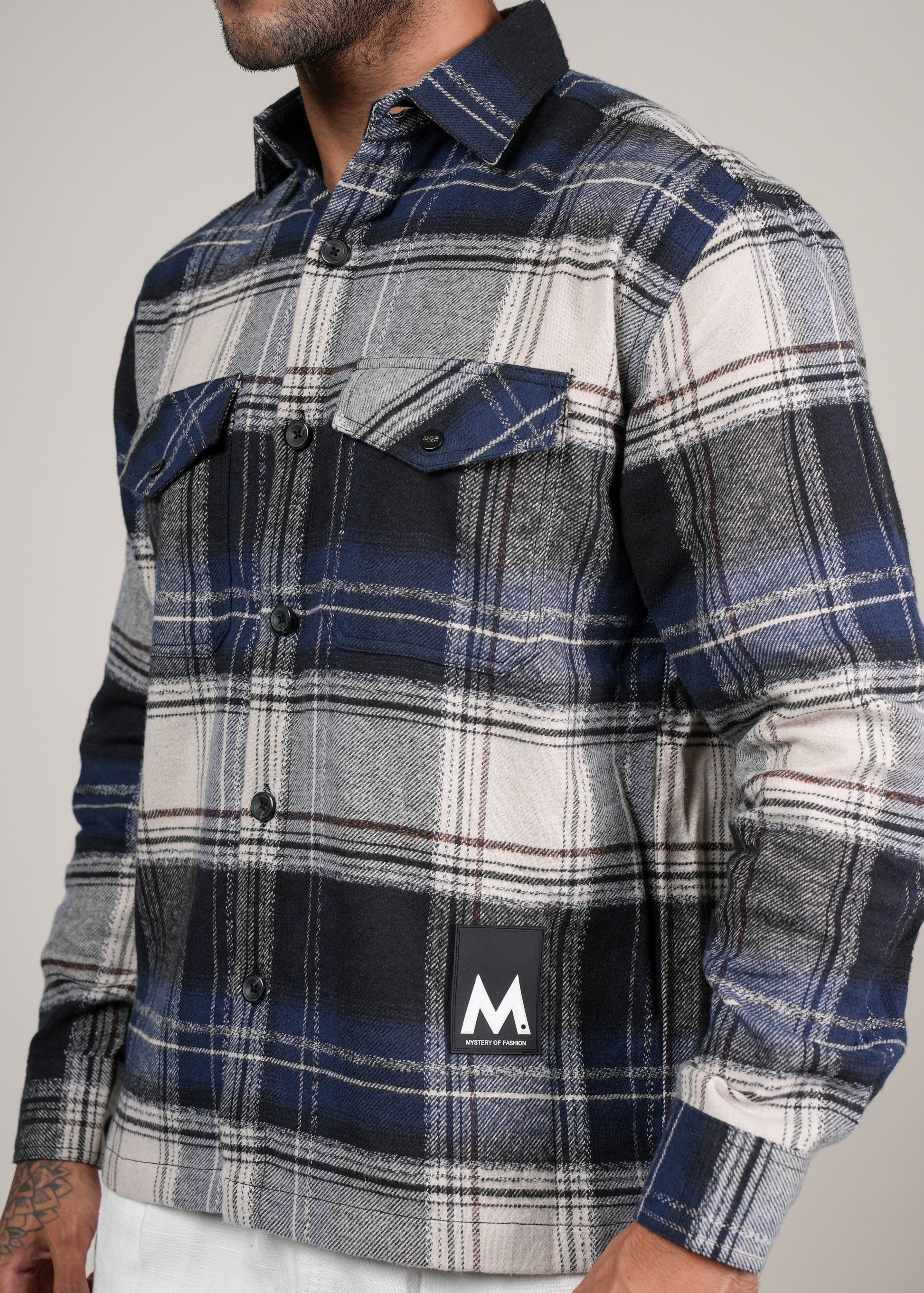 Men’s Premium Navy Brushed Cotton Checked Shacket