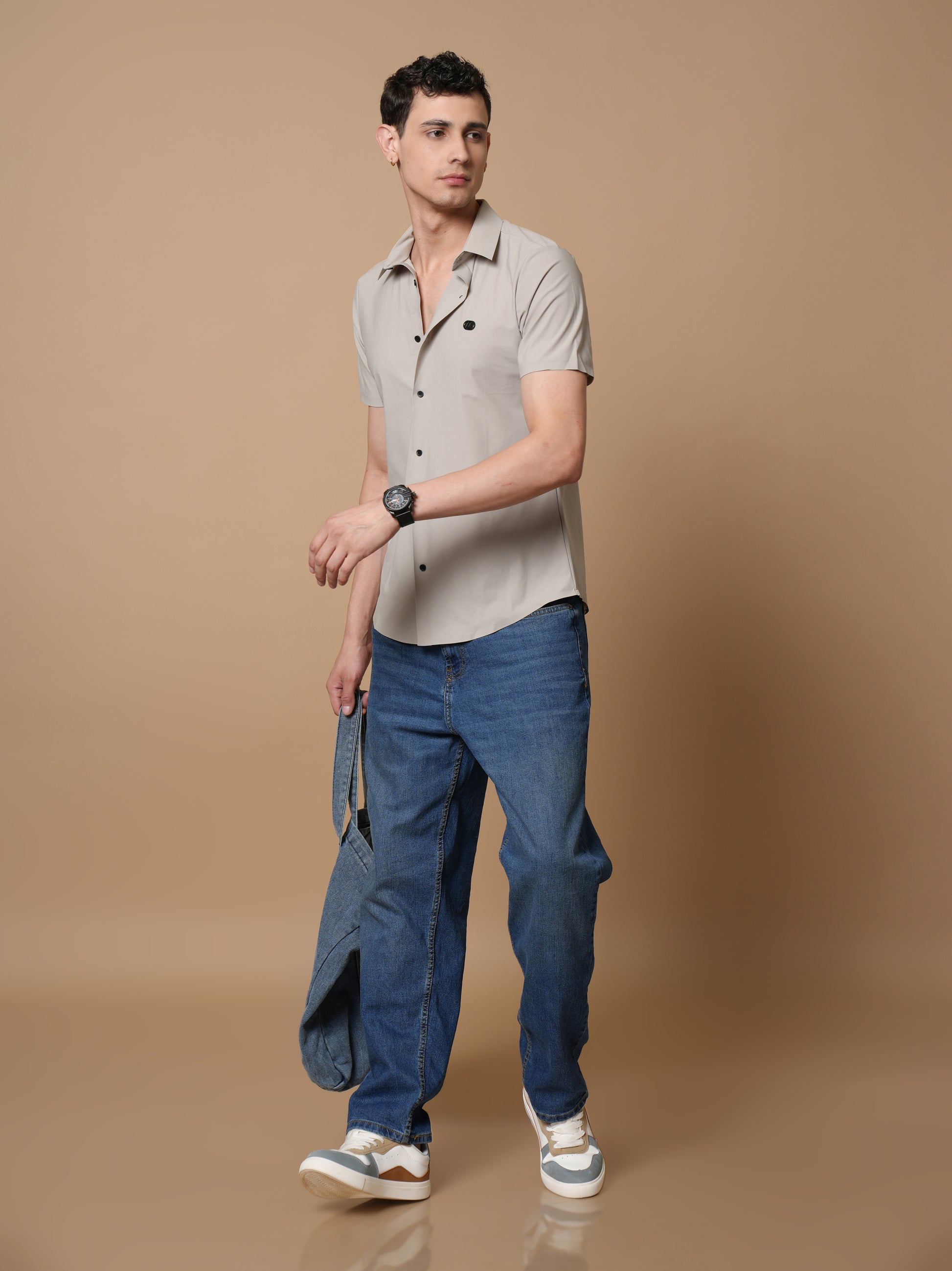 Men’s Short Sleeve Stitchless Shirt Cream