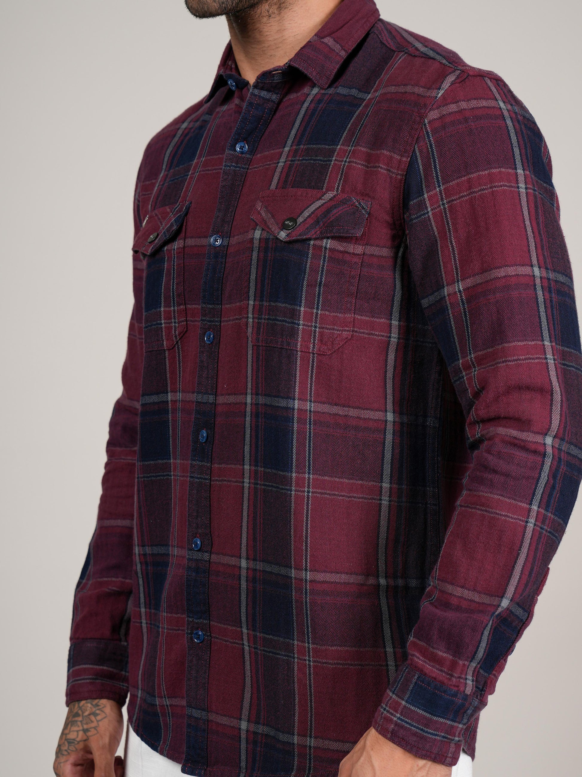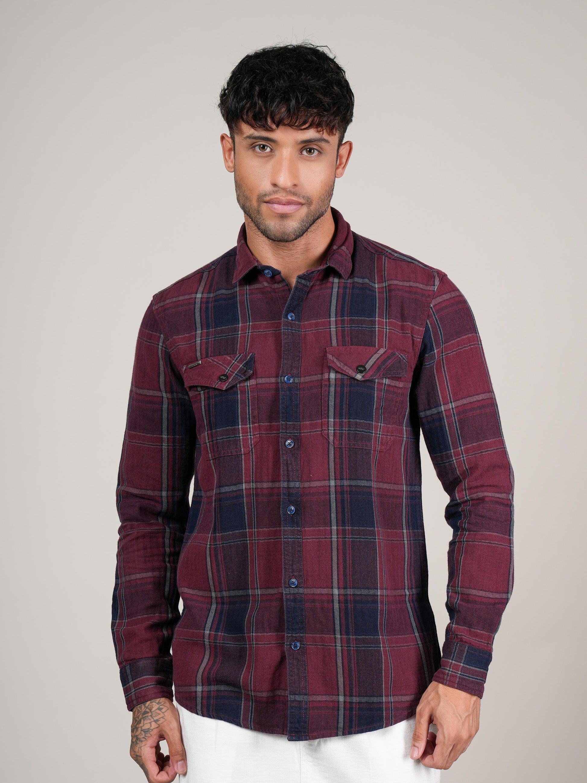 Menes Maroon Checked Casual Flannel Shirt